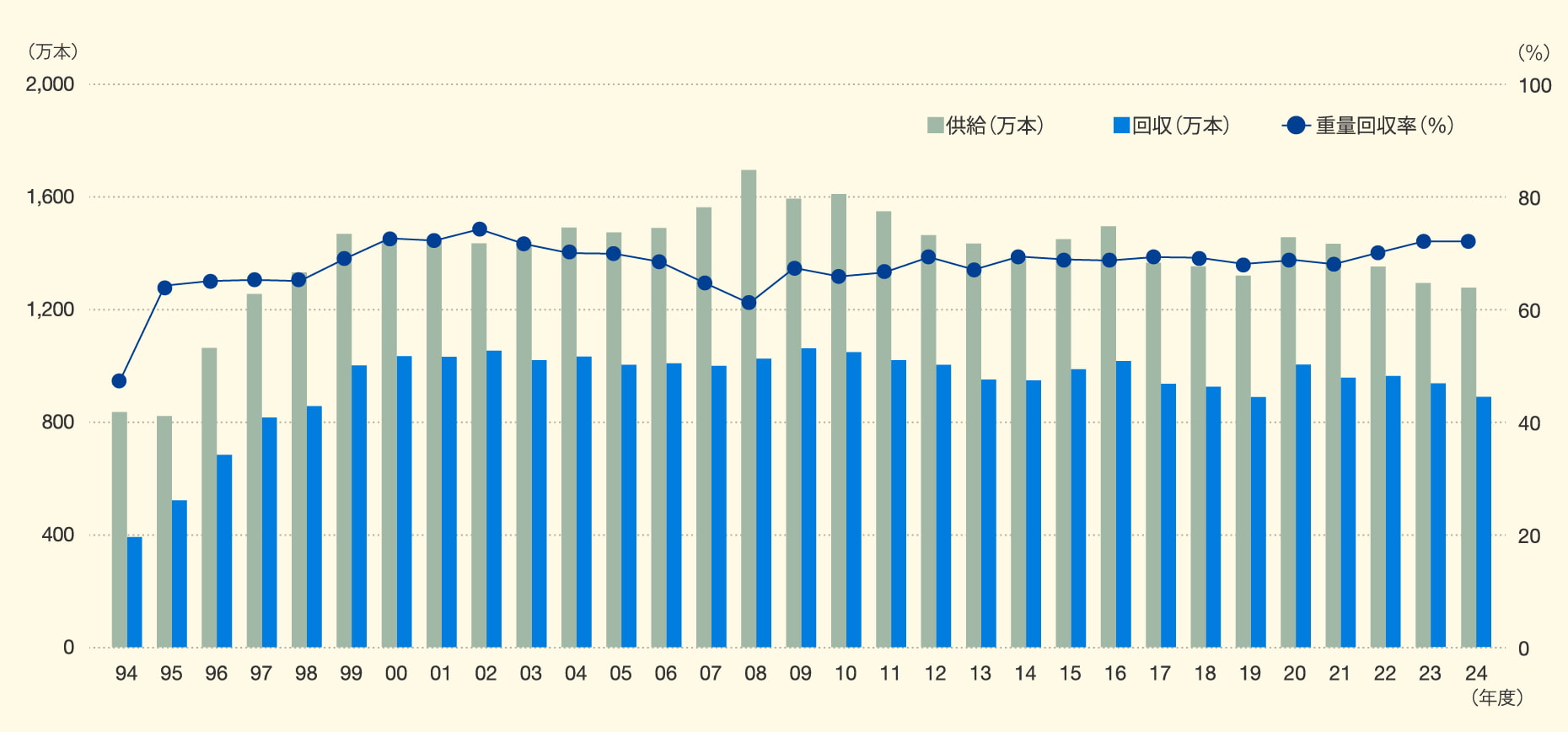 累計回収本数は 2.9億本!重さは7.8万トンに